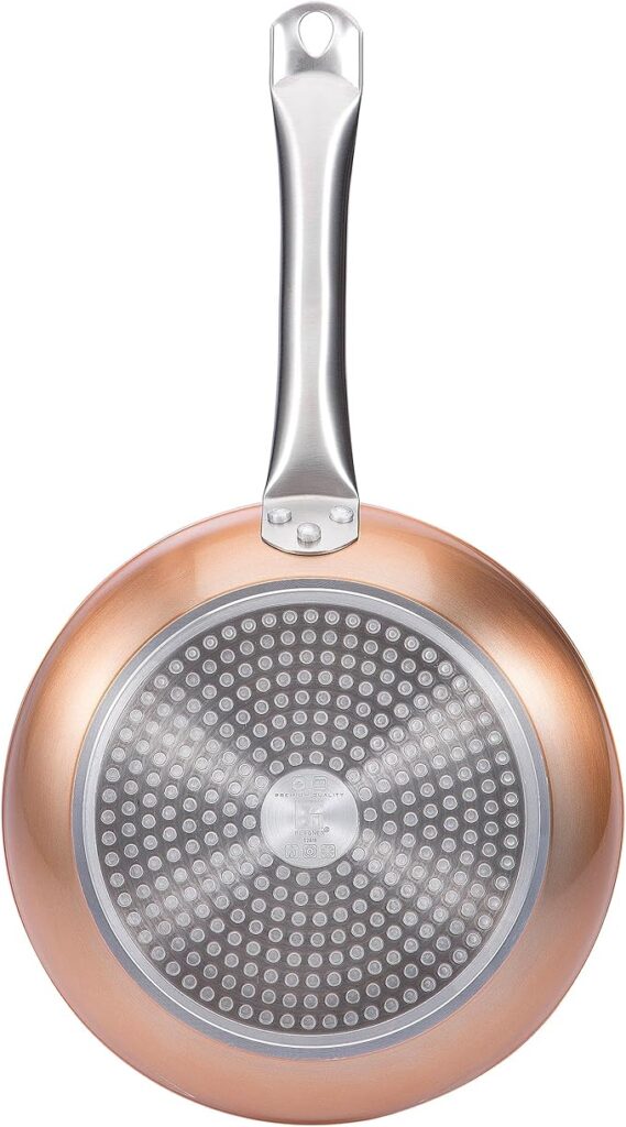 - Revestimiento Antiadherente Reforzado con Diamantes: Ofrece una durabilidad y resistencia al rayado inigualables, garantizando que nada se pegue y facilitando una cocción muy saludable con poco o ningún aceite.