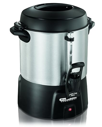 Cafetera tipo urna con capacidad para 40 tazas, ideal para eventos y reuniones donde se necesita servir café a un gran número de personas. Cuenta con un diseño clásico y funciones básicas para facilitar su uso.