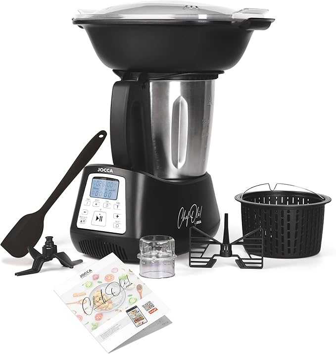 Robot de cocina multifunción con pantalla táctil. Perfecto para cocinar y preparar una gran variedad de platos, desde sopas hasta postres.